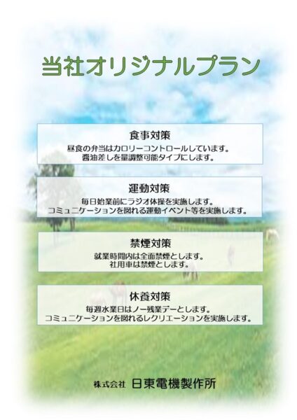 当社は従業員が心身ともに健康で長く働ける会社を目指し「健康事業所宣言」を行いました。